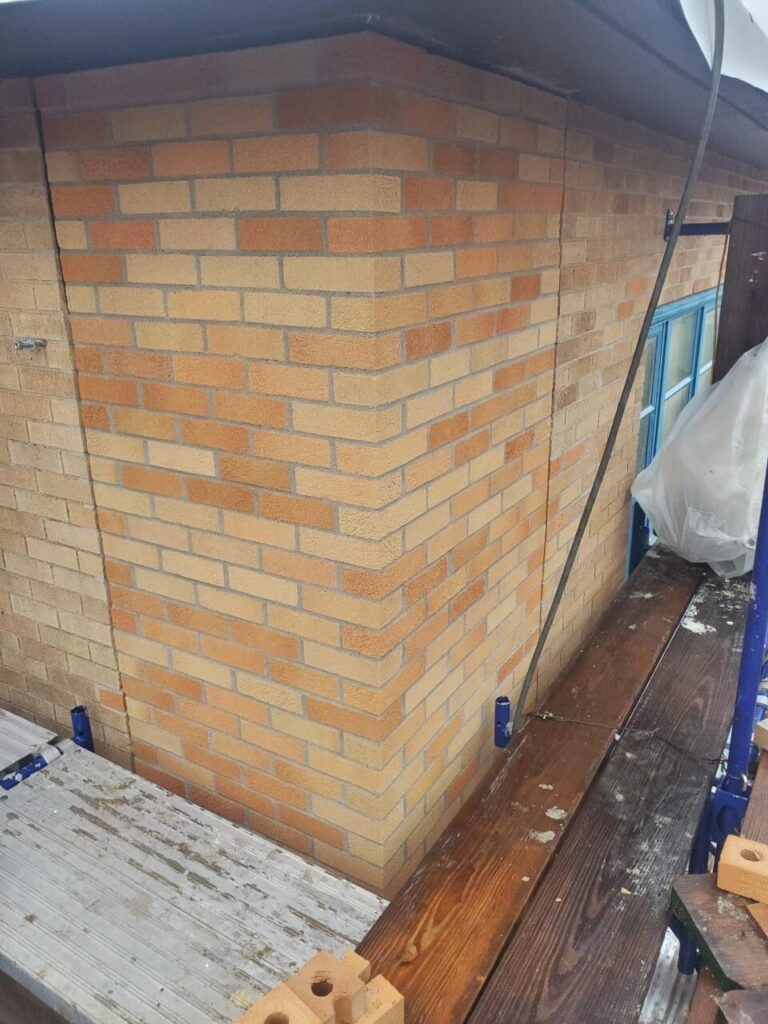 Removal and replacement of face brick at parapet and faade locations to integrate new roof flashings.